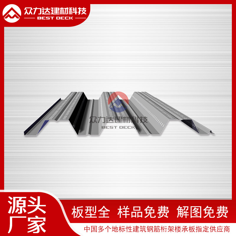 開口式樓承板,也稱作凹凸壓型鋼板,W型樓承板,U型樓承板。開口式樓承板按波高大致分為51和76這二種。
